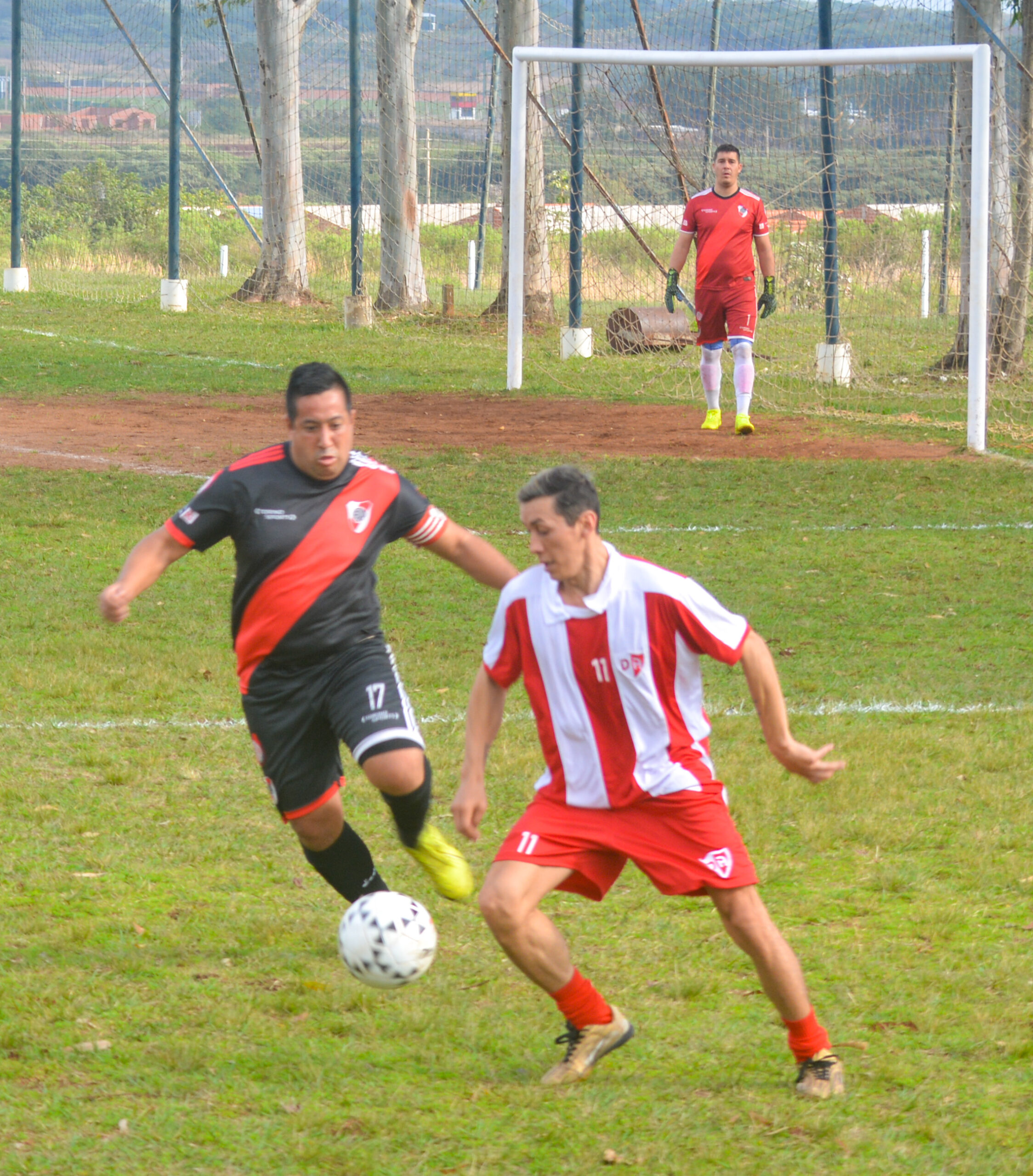 El goleador Julián Salinas, sobre el cierre del primer tiempo, abrió la cuenta para el equipo familiar que estrenó novedoso juego de camisetas, mientras que el conjunto constructor encontró la igualdad gracias a un golazo de tiro libre de Ángel Bordón en el comienzo de la segunda mitad.