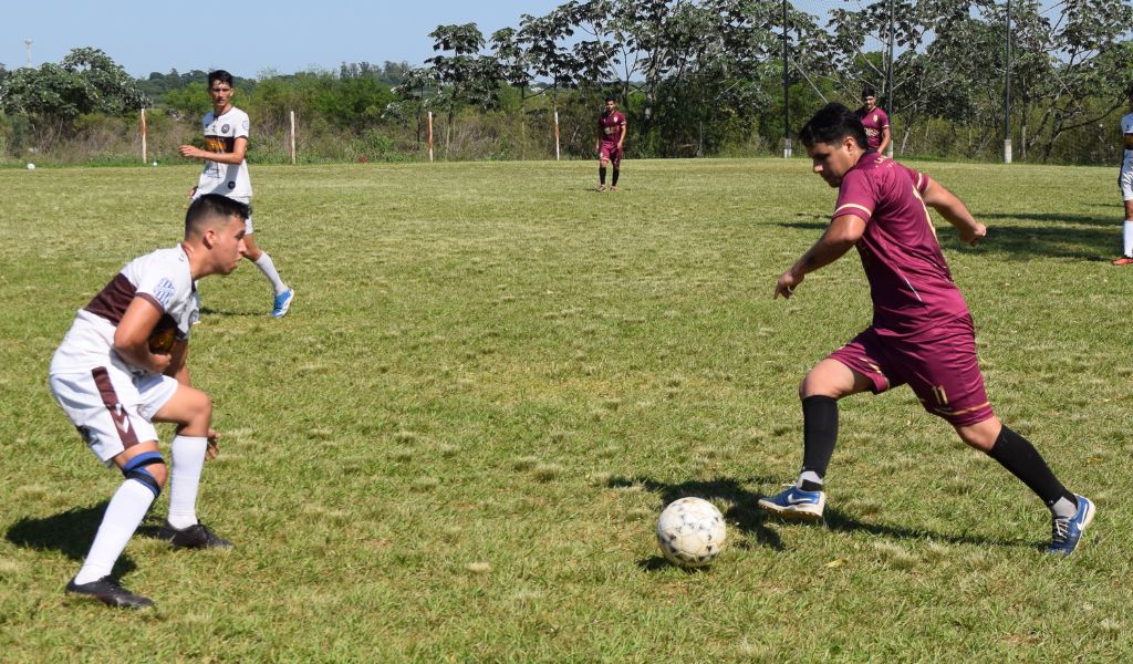 En un primer tiempo intenso y jugado al límite, el matutino de la avenida Quaranta rompió la paridad a los 20’ de juego, cuando luego de una buena combinación colectiva Ángel Coronel surcó el sector izquierdo del ataque y mano a mano con el arquero, con un ángulo cerrado, definió con frialdad para el 1-0 parcial.